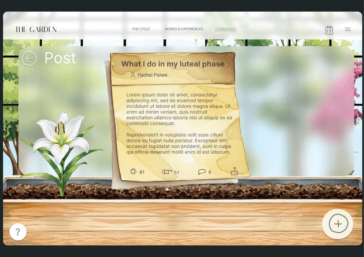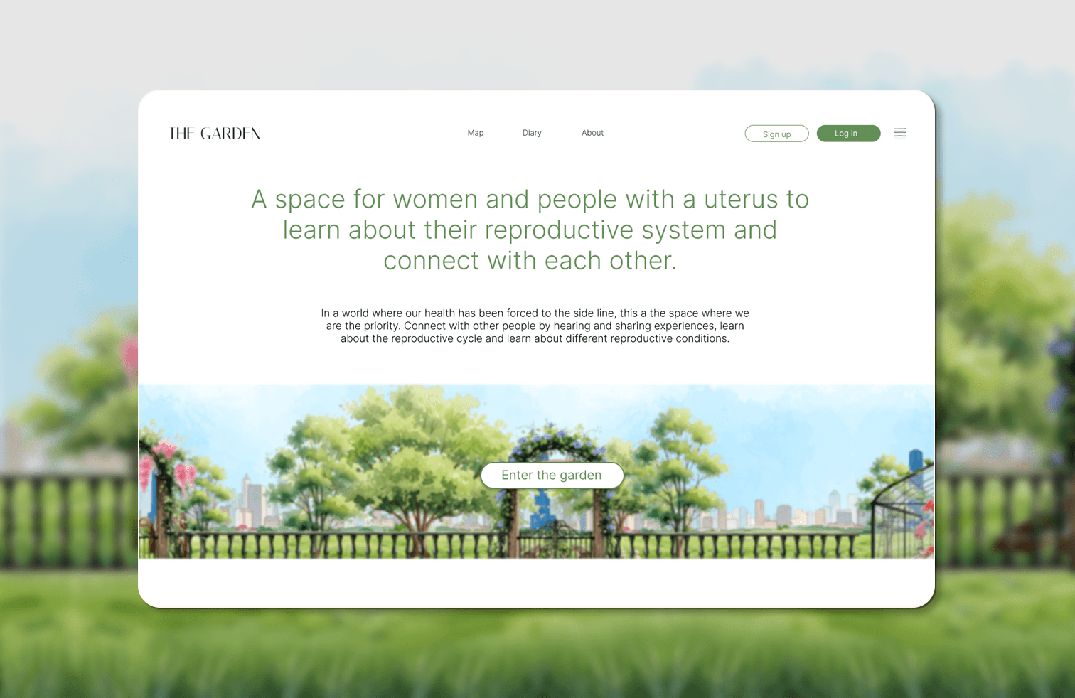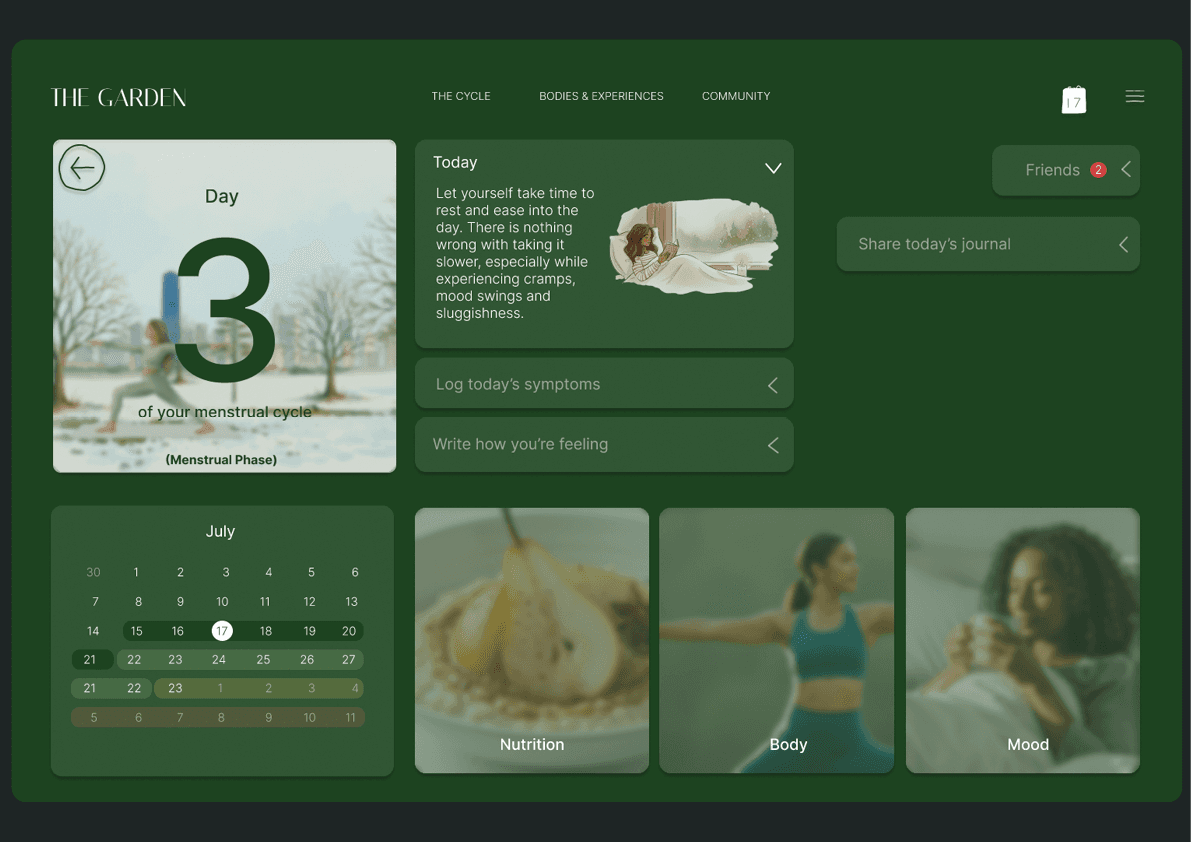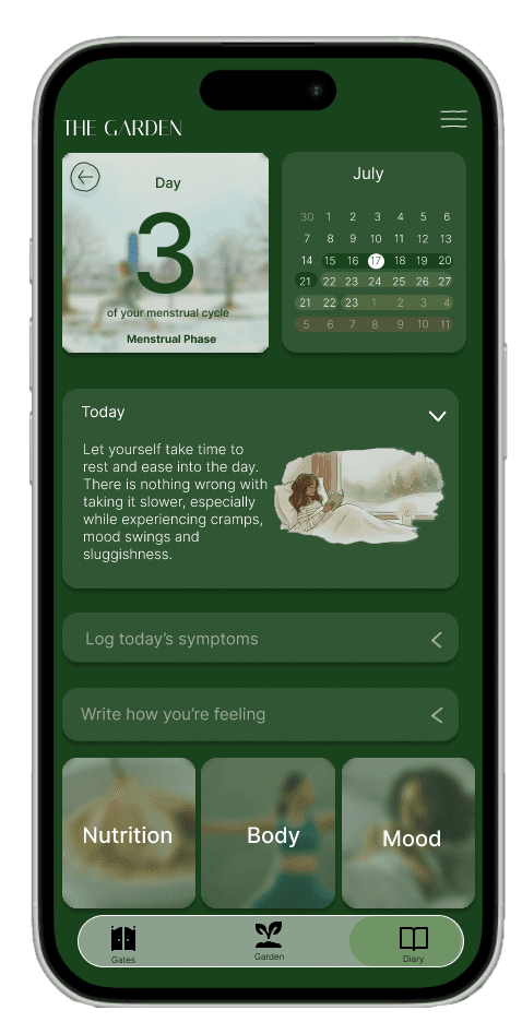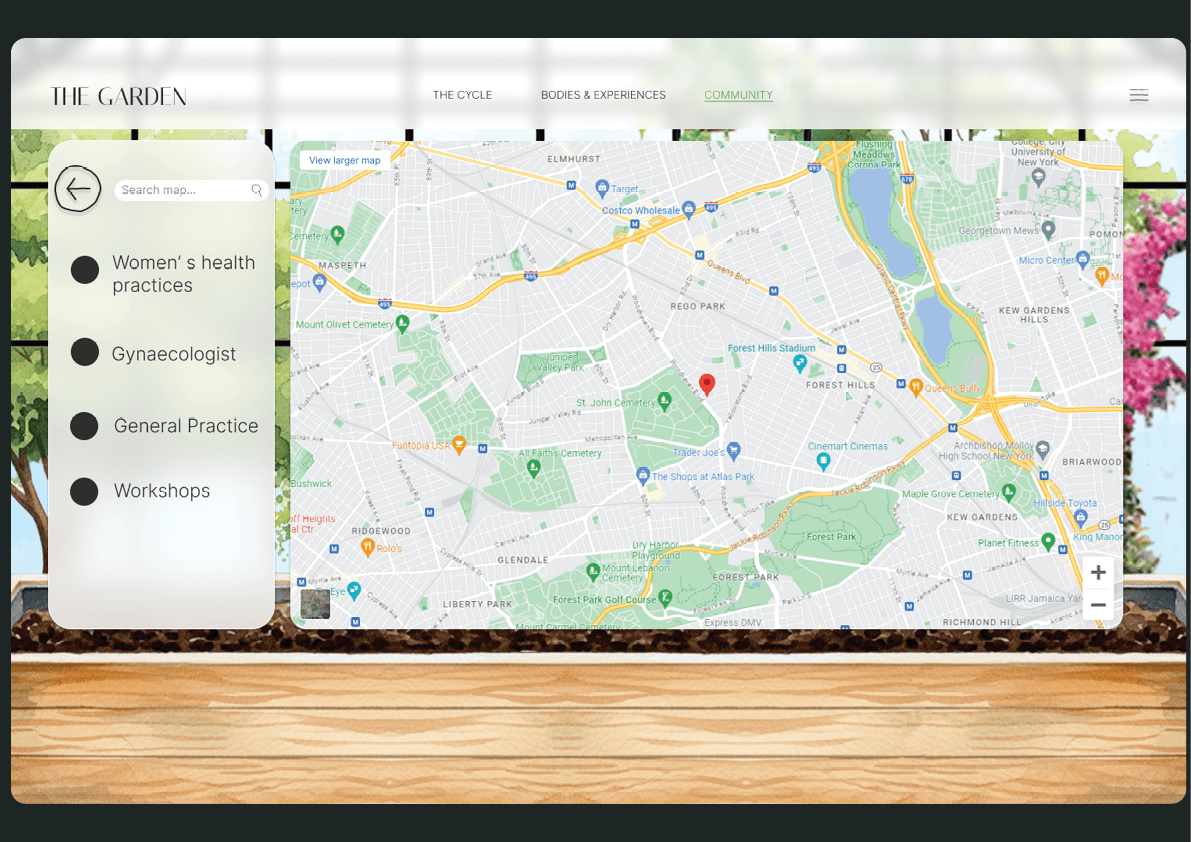 ‘The Garden’ was born out of acknowledgement of a long history of inequity in women’s reproductive health. My own observations about my personal experiences with late diagnosis in reproductive issues, along with hearing all of my female friends’ tales, flagged concern in the structures and nature of women’s reproductive health in Australia, and further research validated the extreme inequity in this area. I developed an accessable website for young women in Australia to learn about their reproductive in a communal, engaging and concise manner.