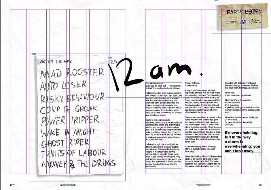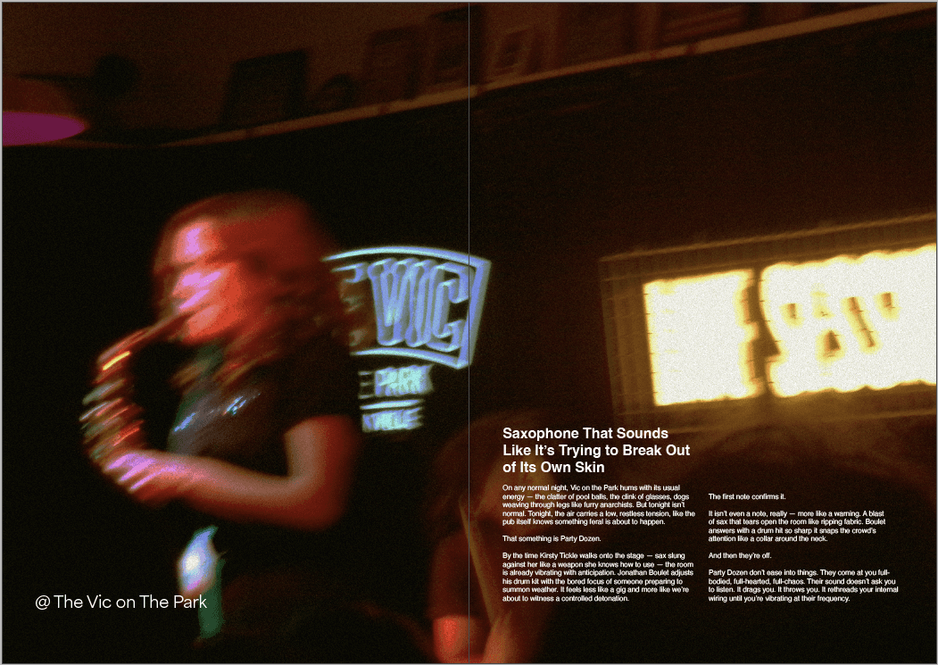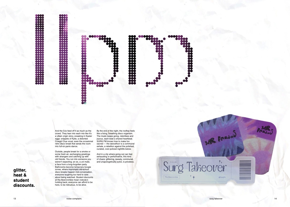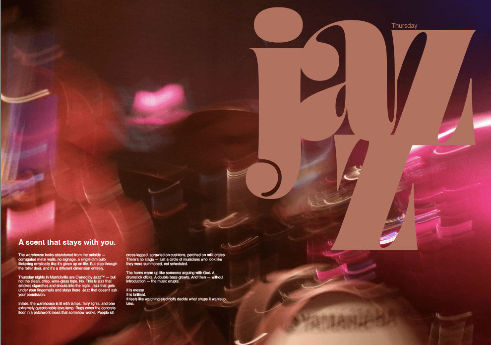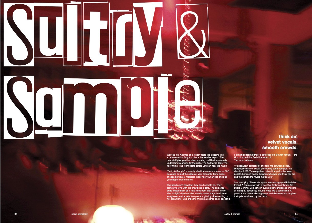 With an open brief, this magazine was designed to highlight the vibrant night life in the inner west and explore the different events and music styles on offer. Each article takes place at a different venue.